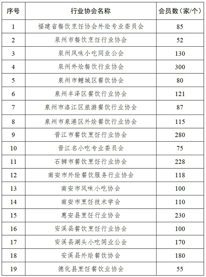 泉州市共有餐饮服务类协会19家,会员单位2616个,聚焦弘扬地方饮食文化,促进烹饪技艺传承与交流,推动菜品研发和产业升级。