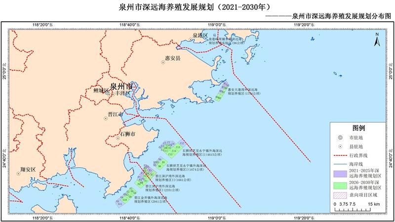 “发展深远海养殖,不仅是优化养殖空间布局、促进养殖业转型升级的重要举措;再造一个海上“蓝色粮仓”,还将促进海产品初加工、冷链物流、健康食品以及海洋药物、生物制品等产业发展,加快培育海洋生物资源综合利用产业链,打造海洋经济发展新增长极。”泉州市海洋与渔业局渔业科负责人介绍,泉州市深远海养殖规划海域面积约151平方公里,可发展深远海养殖平台360台,发展深水抗风浪网箱2000个,将采用“一海岛、四基地、七区域、多装备多功能”的总体布局,同时结合养殖布置,兼容规划分布式渔光互补项目、渔旅融合项目等功能,保障深远海养殖能源供应和促进渔业与海上旅游开发建设等。