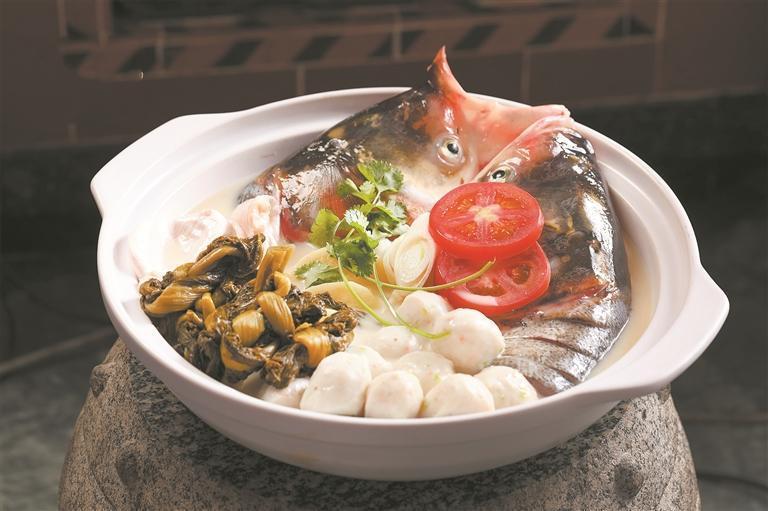 鱼头高昂、宛如鲤鱼跃龙门的瞬间定格,菜品“鱼跃龙门”(金广源鱼头)的造型源自唐代“烧尾宴”典故,古人认为士子登科如鱼化龙,需以宴席庆贺“脱胎换骨”。这道菜品葱丝与蒸鱼豉油的香气氤氲而起,恰似千年前长安街头的报喜锣鼓,化作可回味的味觉记忆。