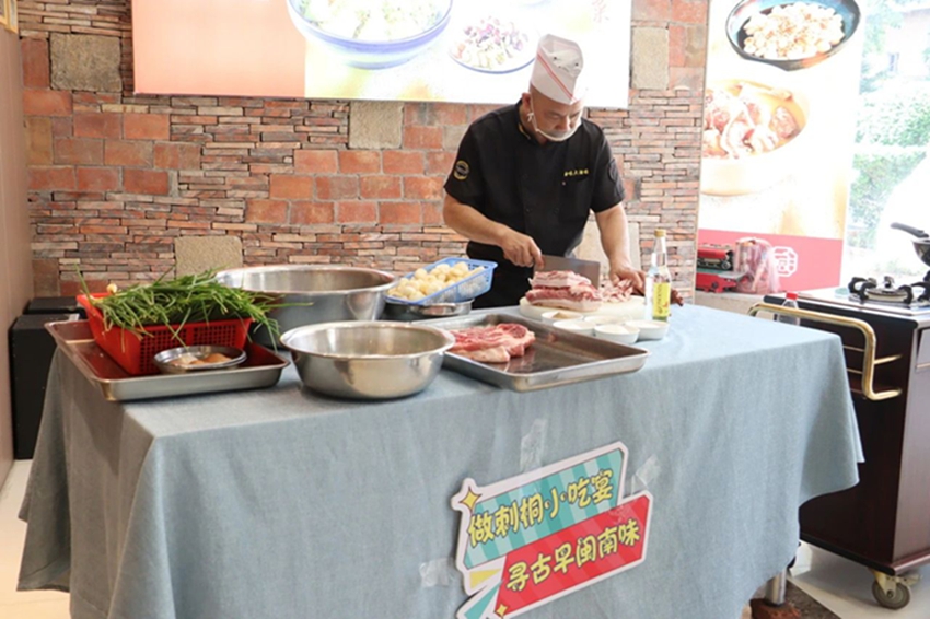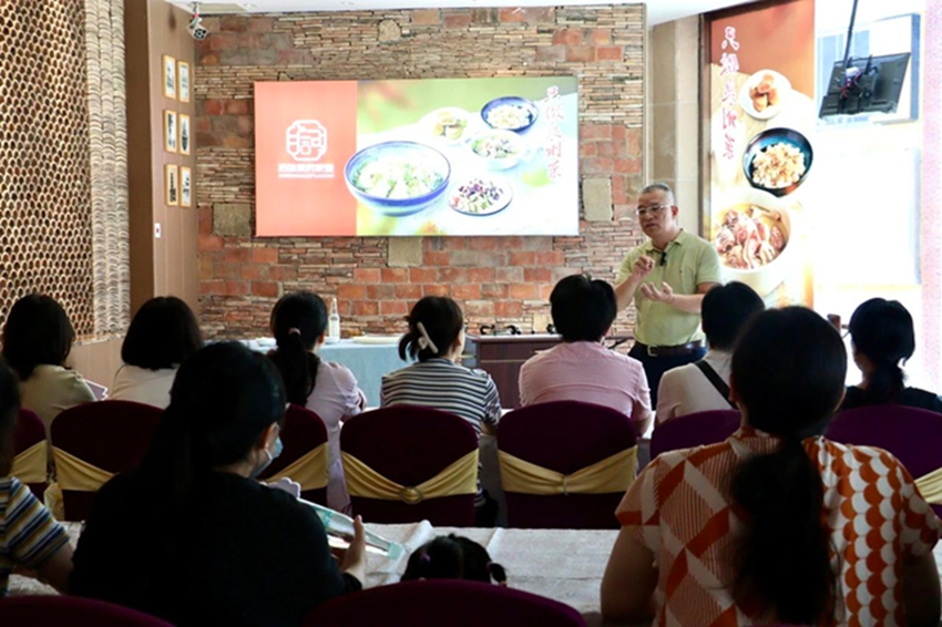 活动中,拾味大酒楼创始人庄建安为大家介绍“刺桐小吃宴”,讲解鸡卷和面线糊的历史和制作原理。他表示,“刺桐宴”承载的不仅是美食,更是活态传承的文化密码。此外,他还介绍,生腌并非潮汕独有,泉州也有一道独具特色的熟醉血蚶,欢迎大家在第三节课程中亲自体验制作过程。
