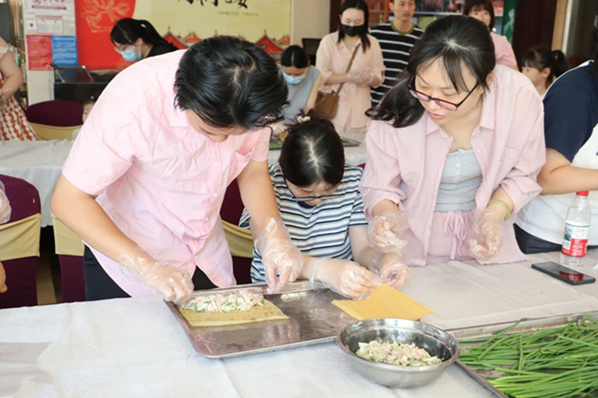 为深入挖掘泉州传统美食文化魅力,推动“刺桐宴”IP矩阵市场化进程,助力泉州市申创“世界美食之都”,7月26日,共青团鲤城区委员会、鲤城区商务局、拾味大酒楼联合开展第四期“青悦”青年夜校之“刺桐小吃宴”烹饪主题第一节课程,全区30名青年共同参与面线糊、鸡卷的制作。