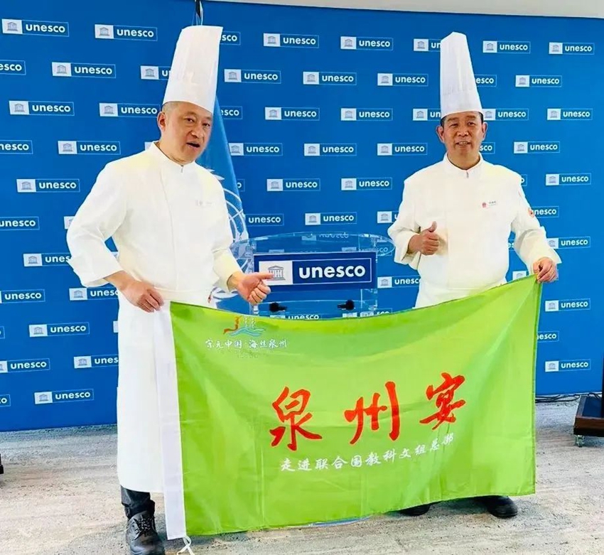 4月15日、16日,国务院新闻办公室、联合国教科文组织、中国联合国教科文组织全国委员会,在联合国教科文组织(巴黎)总部,共同主办了“文明交流互鉴理念国际研讨会”及相关配套活动。中国烹饪协会应邀执行活动期间的“中华文化·雅集”招待会,制作了招待会菜品。来自泉州的胡满荣、刘树文等烹饪大师,在现场以精湛的烹饪技艺制作了多道独具闽南风味的泉州菜,赢得各国嘉宾的广泛赞誉,充分展示泉州美食文化的独特魅力。