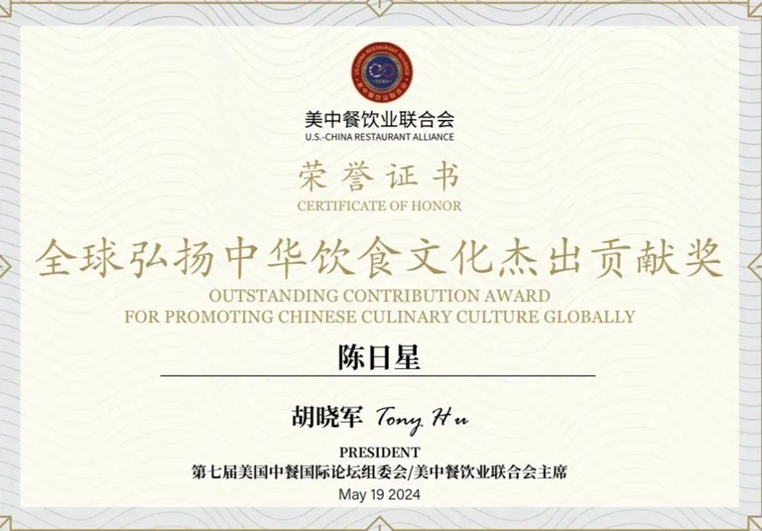 5月19日,第七届美国中餐国际论坛在芝加哥麦考米克会展中心举行。中美两国餐饮业人士汇聚一堂,围绕“推动科技创新赋能,加强合作连锁发展,提升国际中餐品质”主题,探讨美国中餐业未来发展方向。论坛上,来自泉州3名餐饮人陈日星、许民强、杜武汉因其卓越贡献被授予奖项,表彰他们在推广和创新中餐文化方面所做出的努力。陈日星荣获“全球弘扬中华饮食文化杰出贡献奖”,许民强荣获“全球弘扬中华饮食文化优秀人物奖”,杜武汉获得“全球弘扬中华饮食文化优秀人物奖”。