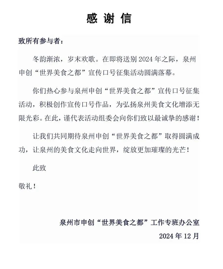 泉州申创“世界美食之都”宣传口号征集结果揭晓