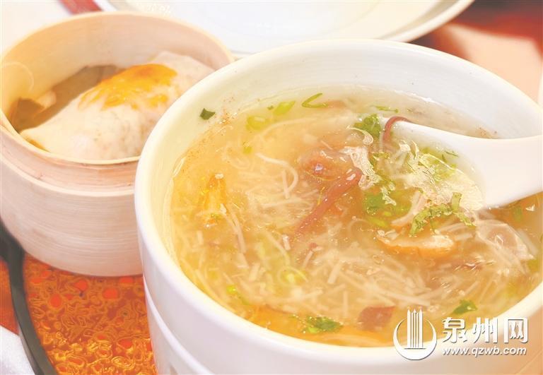 “‘刺桐宴’一共22道菜,象征着泉州22处世界遗产点,各个世界遗产点元素化作舌尖上的盛宴。”丝竹声落,美食品鉴初始,随着精彩的南音表演结束,非遗代表性传承人用最淳朴的乡音带来了唱菜表演,向在场嘉宾介绍起刺桐宴的三大篇章。从“高颜值”冰镇醋猪手裹着琥珀色的酱汁,再到盛放在贝壳造型器皿里的奇味冻沙螺,让人想起宋元时期刺桐港千帆竞发的盛景……“每一味都代表着泉州的故事。”马来西亚侨商李先生感叹道,“刺桐宴把传统的泉州美食变成了文化符号,更好地展示泉州文化,无形中也给我们一种动力,就是在海外打拼时也要继续发扬这种不断创新的精神。”