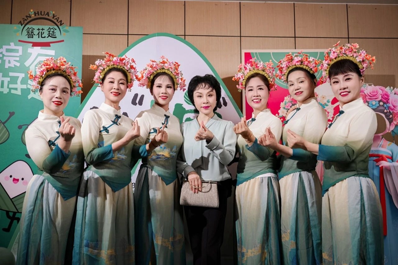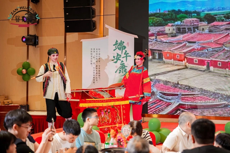 宾客们一踏入酒店,便被*簪花长廊”包围——头顶悬垂闽南簪花与艾草香枝,耳畔是悠扬的南音伴奏。每位女士获赠簪花头饰和艾草香枝,瞬间端午的氛围感拉满。