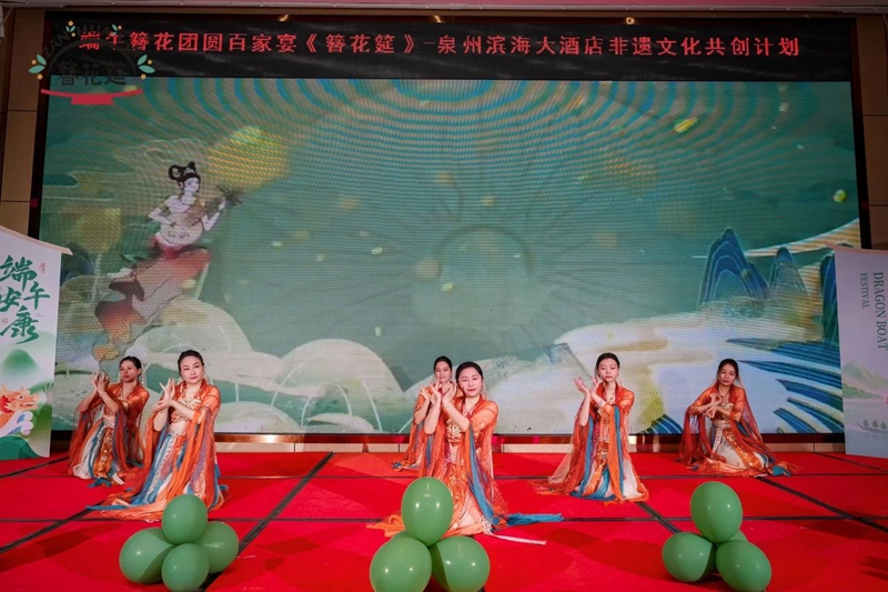 5月31日,簪花筵携手泉州滨海大酒店,打造了泉州首场“端午簪花百家宴”,本次活动是簪花筵与授权餐厅非遗文化共创计划的一次尝试,300位宾客共赴这场融合非遗美学、闽南风味与端午民俗的文化盛宴,现场簪花如海、南音绕梁,仿佛穿越回宋元时期的“东方第一大港”。