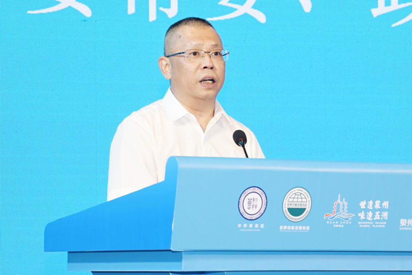 华侨大学旅游国家级实验中心主任、教授、硕导,泉州美食经济研究基地主任,泉州市美食产业促进会美食文化专业委员会主任汪京强作了《泉州海丝美食发展》的主题分享,从历史渊源——海丝起点与饮食基因、食材革命——异域风味的本土新生、华侨纽带——双向流动的文化密码、全球舞台——从联合国到世界餐桌、未来图景——海丝美食的出海新航路五个方面展示了泉州海丝美食是文化韵味的凝练、是烟火人间的写照。