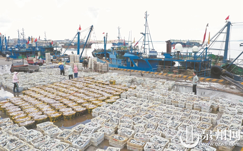 开渔号角吹响,鲜货奔涌上岸。昨日,记者从石狮市海洋发展局获悉,自8月16日开渔以来,仅十天时间,全省最大渔港——石狮祥芝国家中心渔港便有超2.5万吨海鲜通过卸渔廊道渔获交易市场流向各地。据不完全统计,加上泉州其他渔港,全市已有累计超5万吨鲜货“游”上市民餐桌。随着远航渔船陆续归航,渔获量还将持续增加,这场兼具“鲜度”与“热度”的海鲜消费盛宴,正从批发市场、农贸市场蔓延至文商旅场景,点燃泉州消费新热潮。