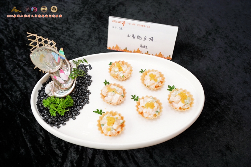 南安赛区的指定泉州菜要求选手以鲍鱼为主要食材进行烹饪。沙律蜂巢酥鲍鱼、山海鲍鱼塔、茶油鸡焖鲍鱼……菜品展示区摆放的各色鲍鱼佳肴让人眼花缭乱、垂涎三尺。“百香果鲍鱼”盛放在切开的百香果中,表面还撒上了果粒;“山海环鲍”是将鲍鱼包进五花肉片,再放入贝壳;黑松露拌鲍鱼、冰镇鲍鱼透着清爽;石锅鲍鱼、鲍鱼焗牛尾则升腾起暖暖烟火气……