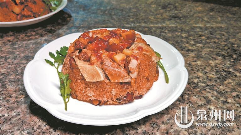 作为一道承载着泉州台商投资区东园地域特色的美食杰作,东园八宝饭凝聚了大海与土地的慷慨馈赠,是当地人民对自然物产巧妙运用、精心制作的结晶。过去,东园八宝饭通常是在重要的节日或庆典时才会制作,寓意着团圆、幸福和丰收。其精心挑选东园特产的多种海鲜,如鲜嫩的虾仁、饱满的蛤蜊等,再搭配醇厚的香菇和软糯的糯米。蒸熟后的八宝饭,糯米粒粒分明、富有嚼劲,海鲜的鲜美、香菇的浓郁与糯米的香甜相互交融,每一口都能感受到多重口感在舌尖交织,仿佛是一场味蕾的狂欢。