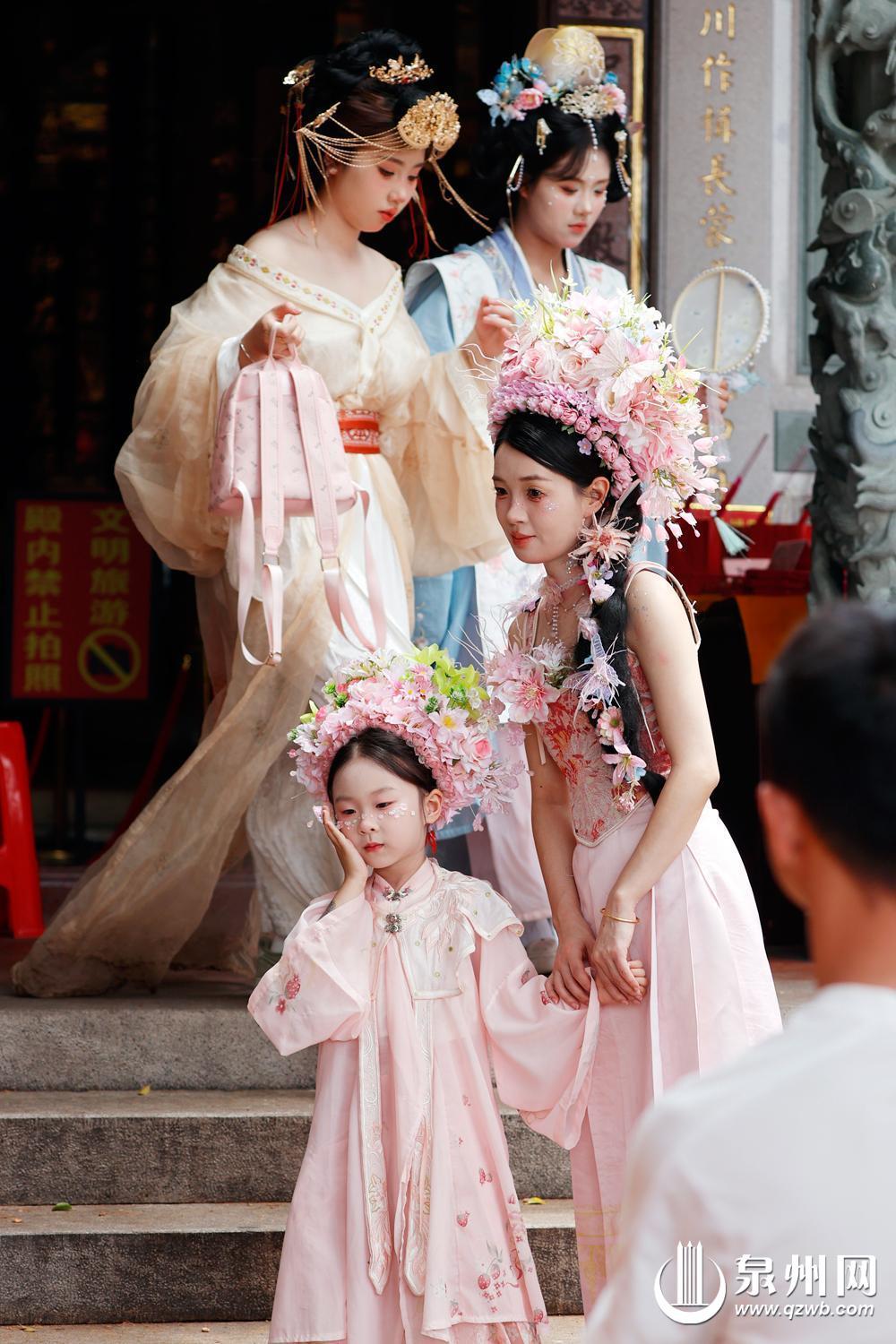 游客在泉拍摄簪花围这一“头上花园”的唯美瞬间(陈晓东 摄)
