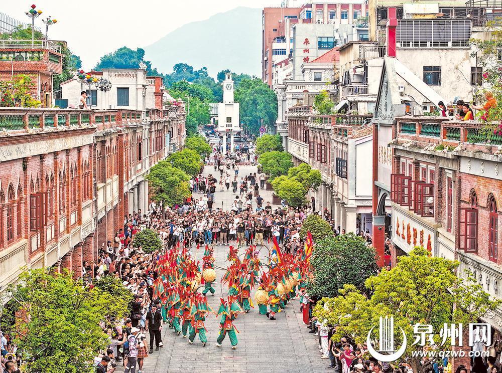泉州古城中山路上的“宋江阵”表演(陈英杰 摄)
