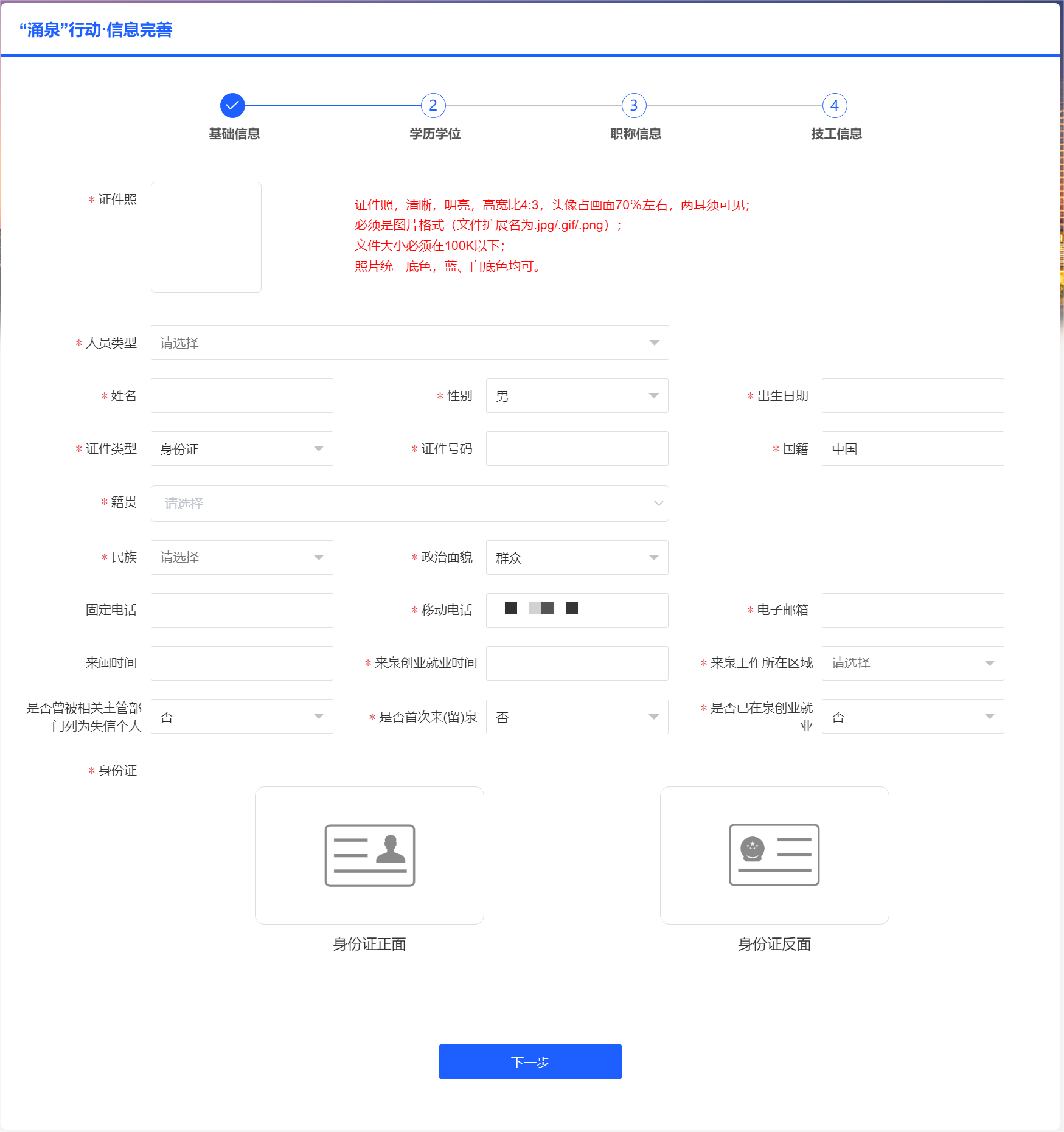5.登陆后如果未完成【信息完善】则进入【信息完善】页面