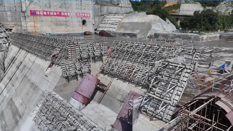 工程另一建设重点是位于大坝下游的发电厂房,厂房为坝后式结构,包含主厂房、副厂房、安装厂及尾水结构四个部分,计划安装三台机组,总装机容量57兆瓦。目前,发电厂房已完成基础开挖,正在进行厂房下部结构施工,主厂房已浇筑至187.6米高程,副厂房浇筑至190.5米高程,安装厂浇筑至189.5米高程。按计划,今年年底将完成厂房210.5米以下结构施工,为机组安装创造条件,整体厂房工程预计明年年底基本完工。