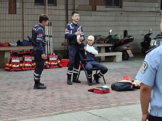 南安市红十字极光应急救援队走进石井派出所开展应急救护技能普及活动