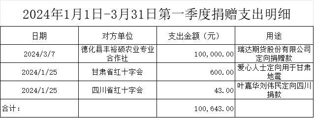 2024年1月1日-3月31日第一季度捐赠支出明细