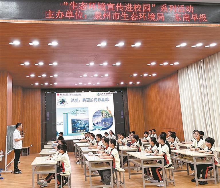 2025年6月5日是第54个世界环境日。当天,由泉州市生态环境局、东南早报联合主办的“生态环境宣传进校园”系列活动走进丰泽区北附小学。来自泉州师范学院海洋与食品学院海洋技术教研室主任邱勇博士、副教授,受邀开展“‘海洋星球’探索地球水域的奥秘”主题讲座,带领小记者们聚焦海洋环境保护。