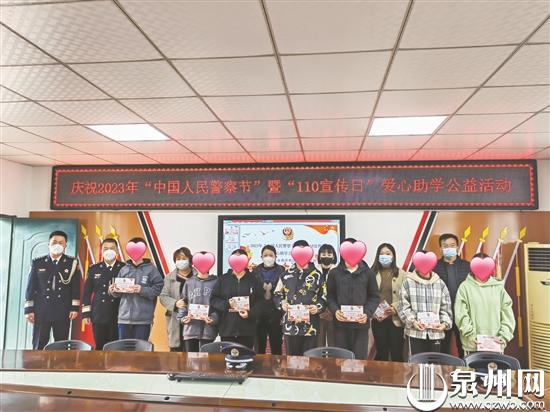 1月10日,洛江区公安分局河市派出所携手爱心企业来到辖区中学,开展庆祝2023年中国人民警察节暨“110宣传日”爱心助学公益活动,对11名困难学生进行帮扶,并给他们送去冬日的温暖。