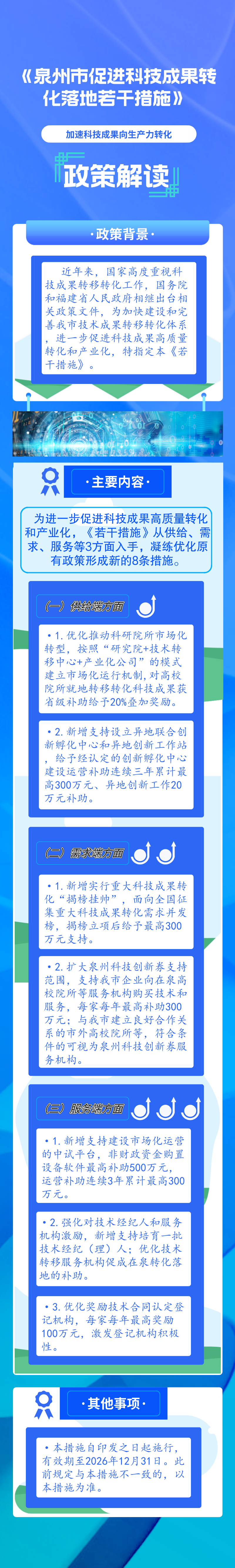 图解:泉州市人民政府办公室关于印发泉州市促进科技成果转化落地若干措施的通知