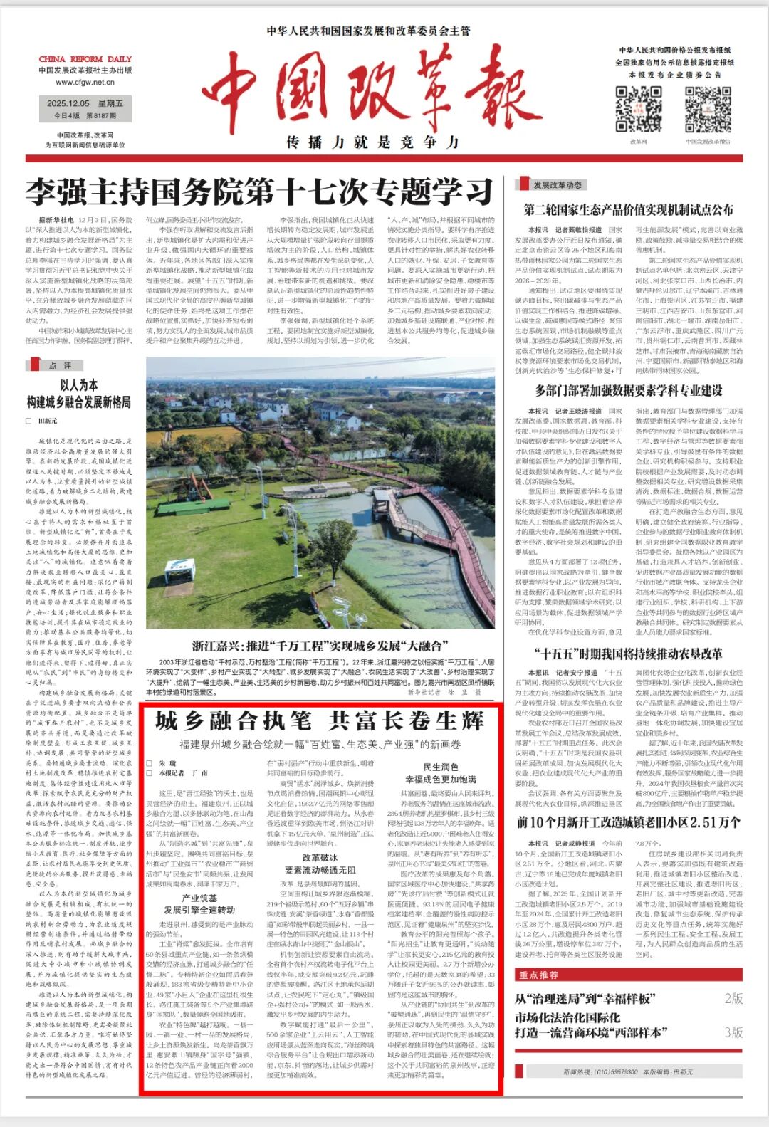 《中国改革报》头版刊发