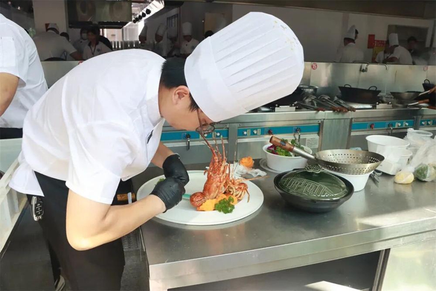 菜品出锅,选手精心摆盘。
