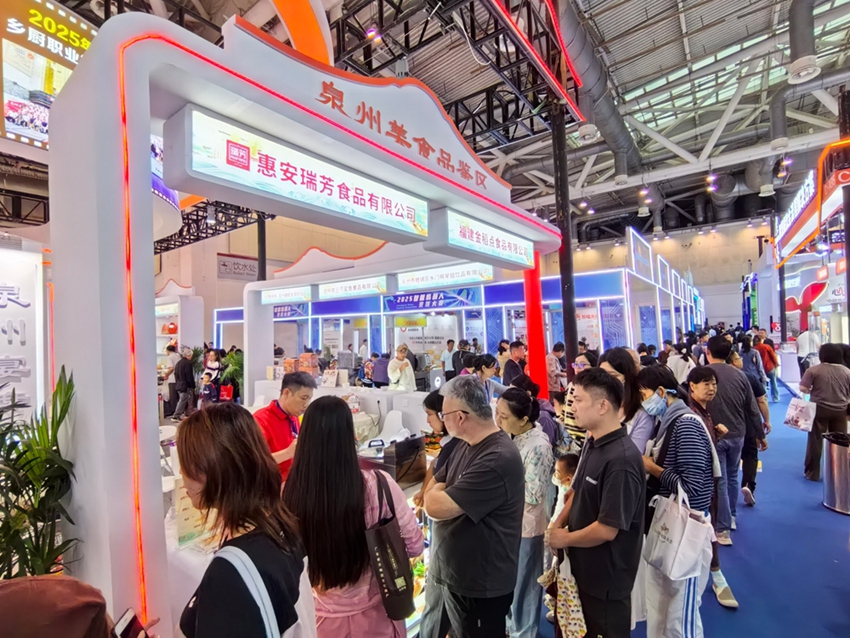 在本届厨师节活动上,泉州市申创世界美食之都办公室与泉州市商务局组织6个行业协会共24家企业参展。作为福建“闽货华夏行”的其中一站,180平方米的泉州展馆以泉州标志性的红砖厝线条勾勒轮廓,以宋元时期“东方第一大港”的辉煌历史和文脉为精神内核,深度融合海丝文化基因与当代美食创意,采用“文化展示+美食品鉴+产业推介”的立体呈现模式,打造兼具味觉享受与视觉冲击的沉浸式美食文化空间。活动期间,泉州展馆接待参观人次超1万人次,成为不少自媒体与参观者的热门打卡地。