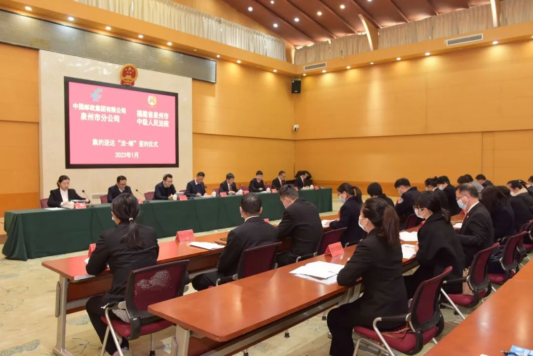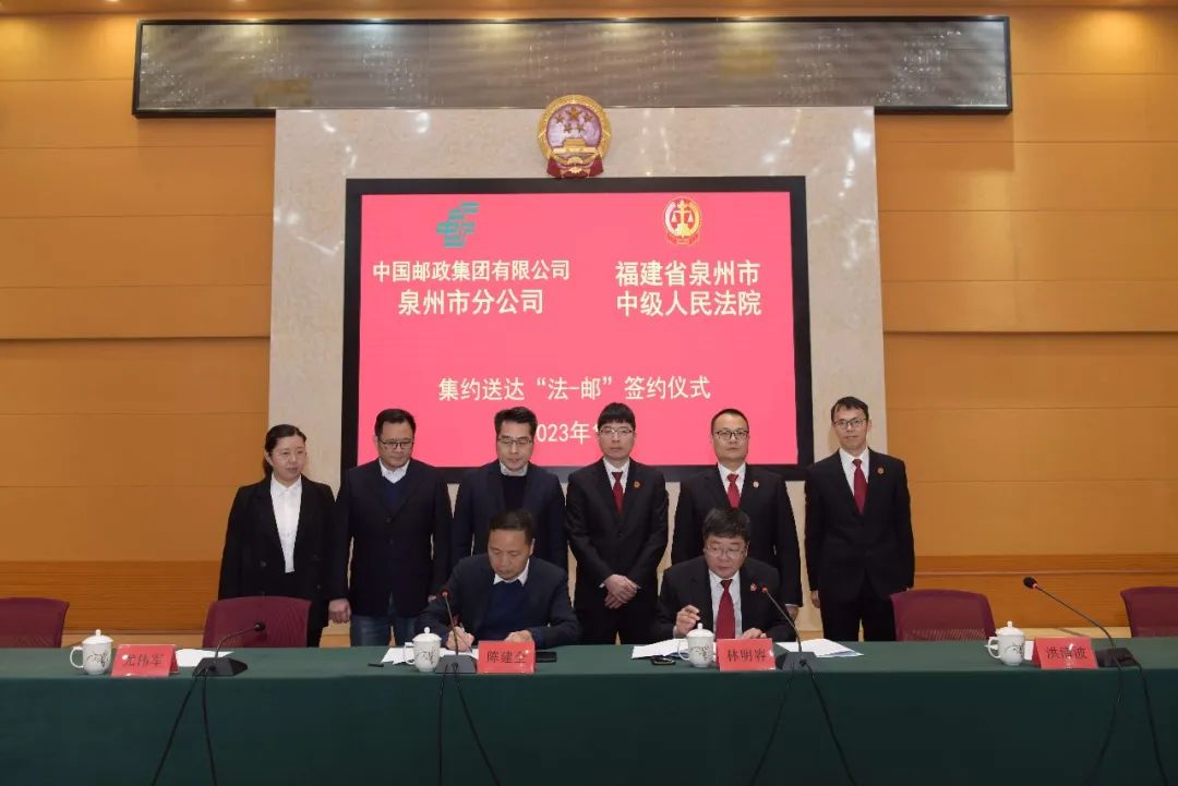 近日,泉州中院在福建高院的统筹指导下,与中国邮政集团有限公司泉州市分公司举行司法集约送达合作签约仪式,并组织座谈交流。