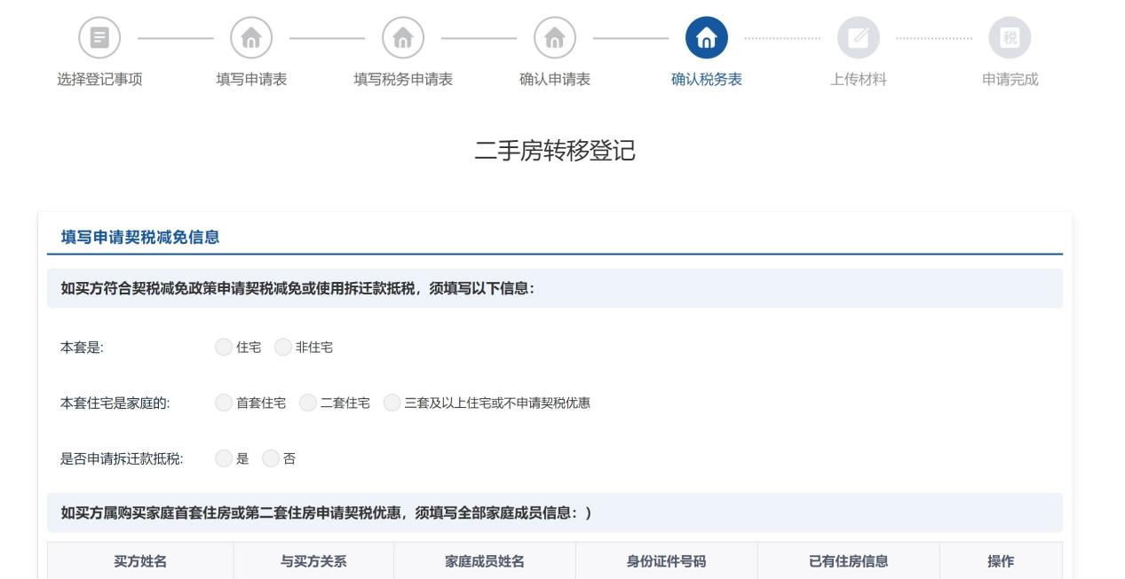 2.选择二手房转移登记,填写申请信息和不动产情况。