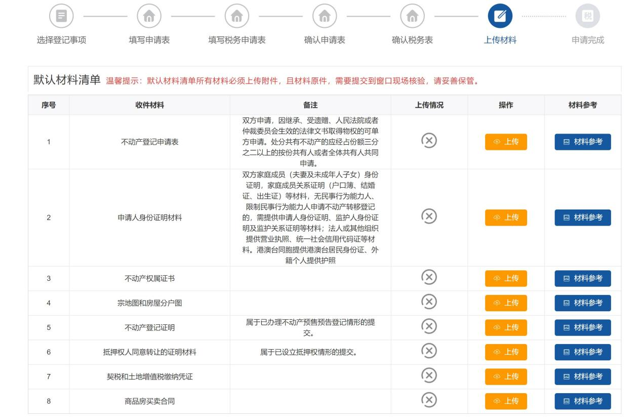 默认材料清单所有材料必须上传附件,且材料原件,需要提交到窗口现场核验,请妥善保管。可在【用户中心】中查询该业务的审核进度。