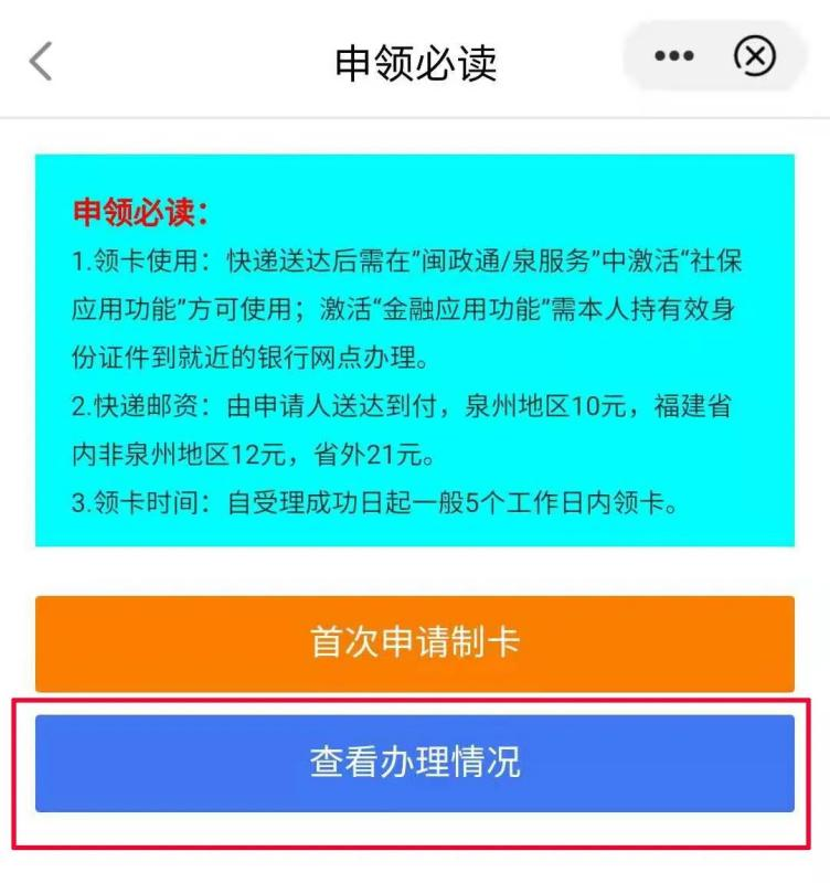 用户可登陆闽政通APP界面,在左上角定位“泉州市”后选择“泉服务”小程序,实名认证登陆后点击“社保卡服务”进入界面,选在社保服务的事项里根据实际情况选择“首次申请”或是“补换卡”,按系统提示填写有关信息,上传“个人身份证正反面”,点击下一步进行填写详细的收件人信息,可在“查看办理情况”查询快递物流信息,收到卡片后,社保功能需进行线上激活,银行金融功能需到银行柜台激活。