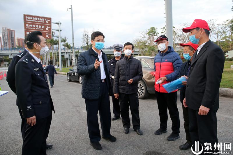 图为市委书记康涛检查沈海高速泉州(西福)出入口防控点。