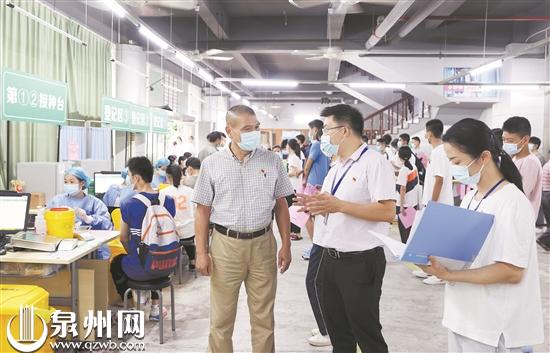 9月12日,丰泽区纪检监察干部到泉州市侨乡体育中心新冠疫苗方舱接种点开展督查,保障新冠疫苗接种工作精准规范有序开展。 (张九强 郑锦芬 摄)