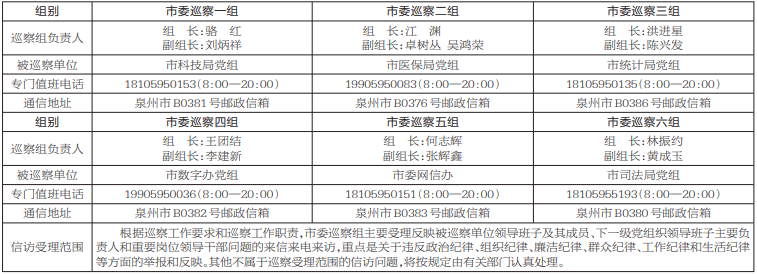 根据《中国共产党巡视工作条例》及中央、省委、市委关于巡视巡察工作的部署要求,经市委巡察工作领导小组同意,从12月16日起,市委巡察组对市委网信办、市科技局党组、市司法局党组、市统计局党组、市医保局党组、市数字办党组等6个党组织开展常规巡察,巡察时间30天左右。