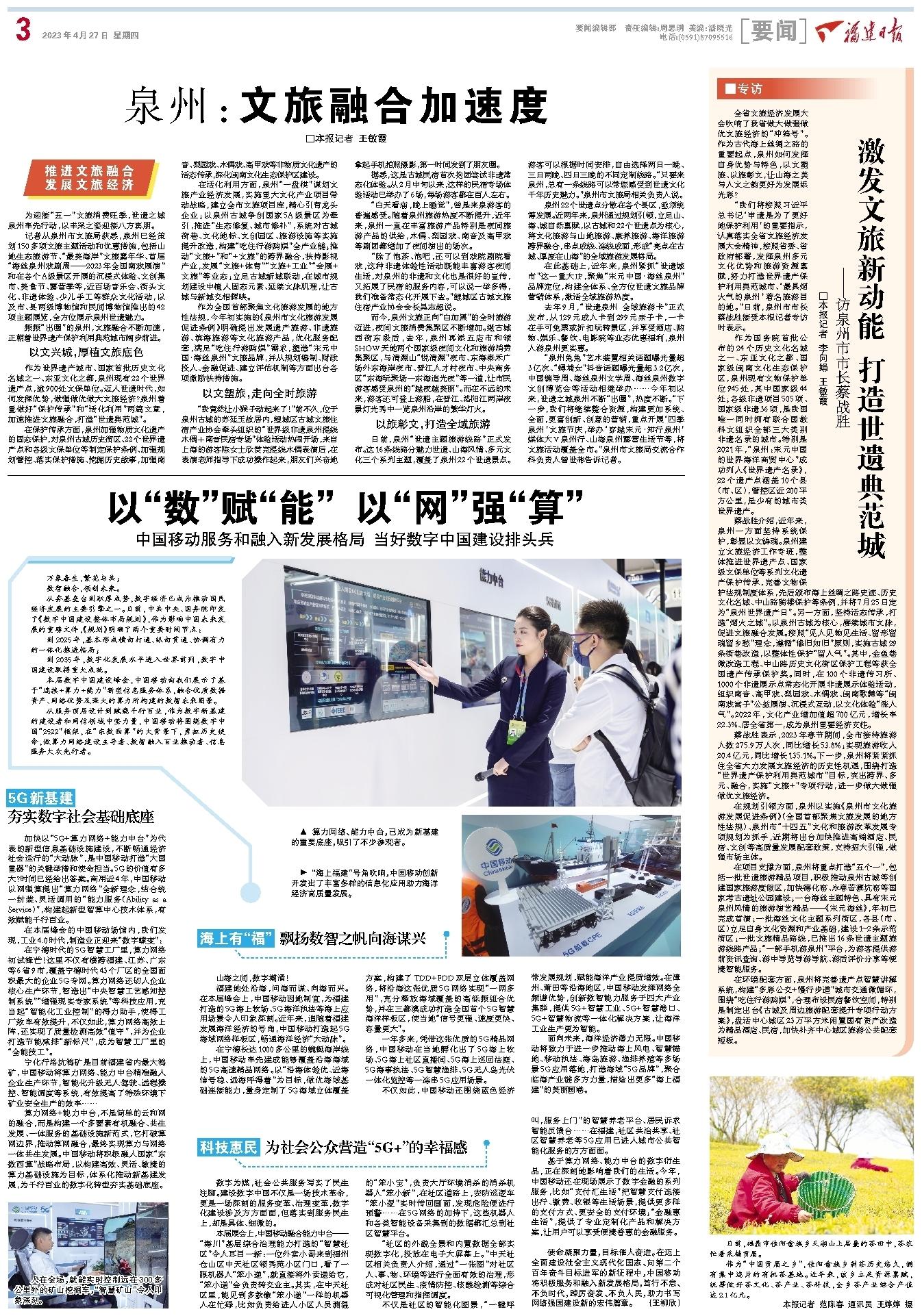 “我们将按照习近平总书记‘申遗是为了更好地保护利用’的重要指示,认真落实全省文旅经济发展大会精神,按照省委、省政府部署,发挥泉州多元文化优势和旅游资源禀赋,努力打造世界遗产保护利用典范城市、‘最具烟火气的泉州’著名旅游目的地。”日前,泉州市市长蔡战胜接受福建日报记者专访时表示。