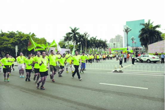 当日上午8时45分,简单的开幕式后,随着青商会会长洪少培发令枪的响起,健行活动正式开始。参赛者统一着装、手举队旗,热情高涨地在马拉松世界冠军孙伟伟的带领下从石狮市人民广场出发。此次健走全程42.5公里,沿途经过中西风格建筑——景胜别墅、石狮境内最大规模庙宇——朝天寺、爱国主义教育基地——李子芳烈士纪念馆、抗倭城门——永宁古卫城等13个著名景点,经过沿海五镇,最终到达卡飒明筑。