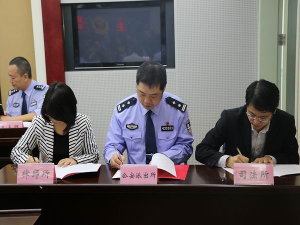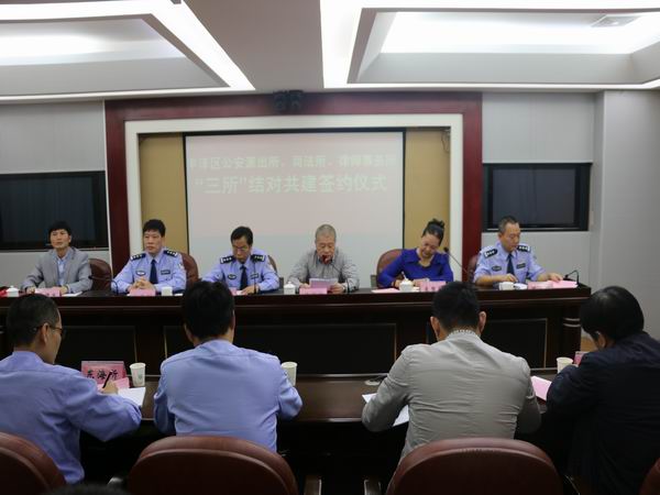 为深入推进丰泽区社会治安综合治理创新工作,加强公安派出所、司法所和律师事务所之间的联系协作,提升基层政法机关化解矛盾纠纷,维护社会稳定,构建平安丰泽、和谐丰泽、法治丰泽的能力水平。11月24日上午,丰泽公安分局、丰泽区司法局联合在公安分局六楼会议室举行公安派出所、司法所、律师事务所“三所”结对共建活动签约仪式。丰泽区委常委、政法委书记胡祥辉、区政府副区长、公安分局局长朱长沙,区司法局局长李黎萌,区公安分局、司法局分管领导,各公安派出所(边防所)所长,各司法所所长,各律师事务所主任,以及公安分局、司法局相关职能部门领导参加签约仪式,仪式由公安分局党委副书记、政委杨振刚主持。