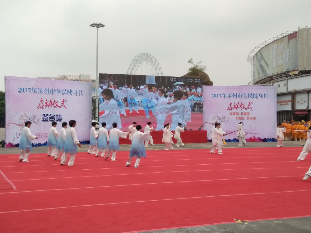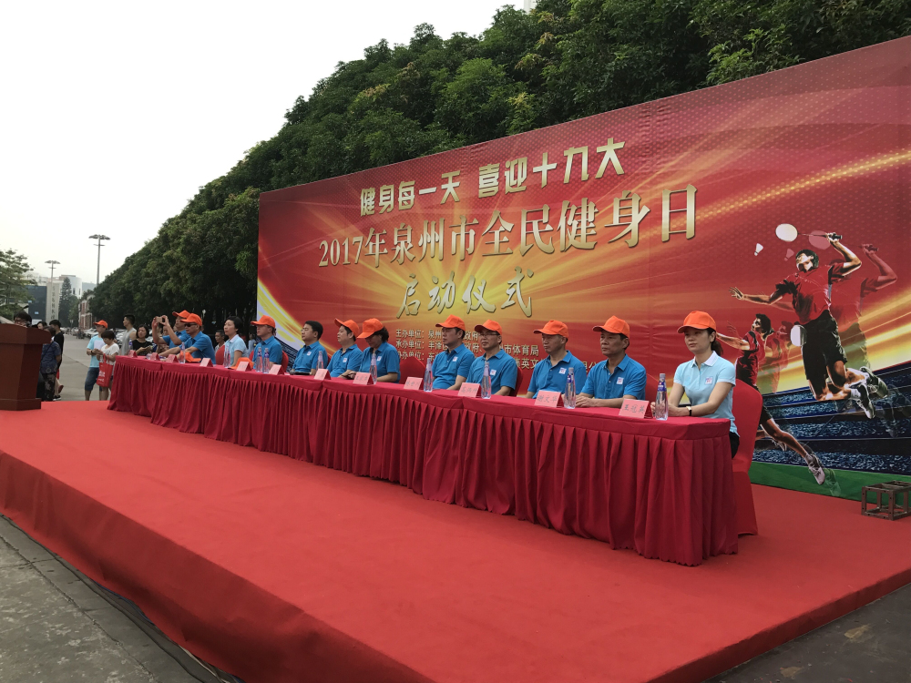 8月8日上午,2017年泉州市第九个“全民健身日”启动仪式在泉州市侨乡体育中心举行。市人大常委会副主任吴有才、市政协副主席陈益,丰泽区领导杨国昕、周顺安、林世川、洪奕蓉、高炳州及市体育局、丰泽区直机关、街道负责人等出席活动。