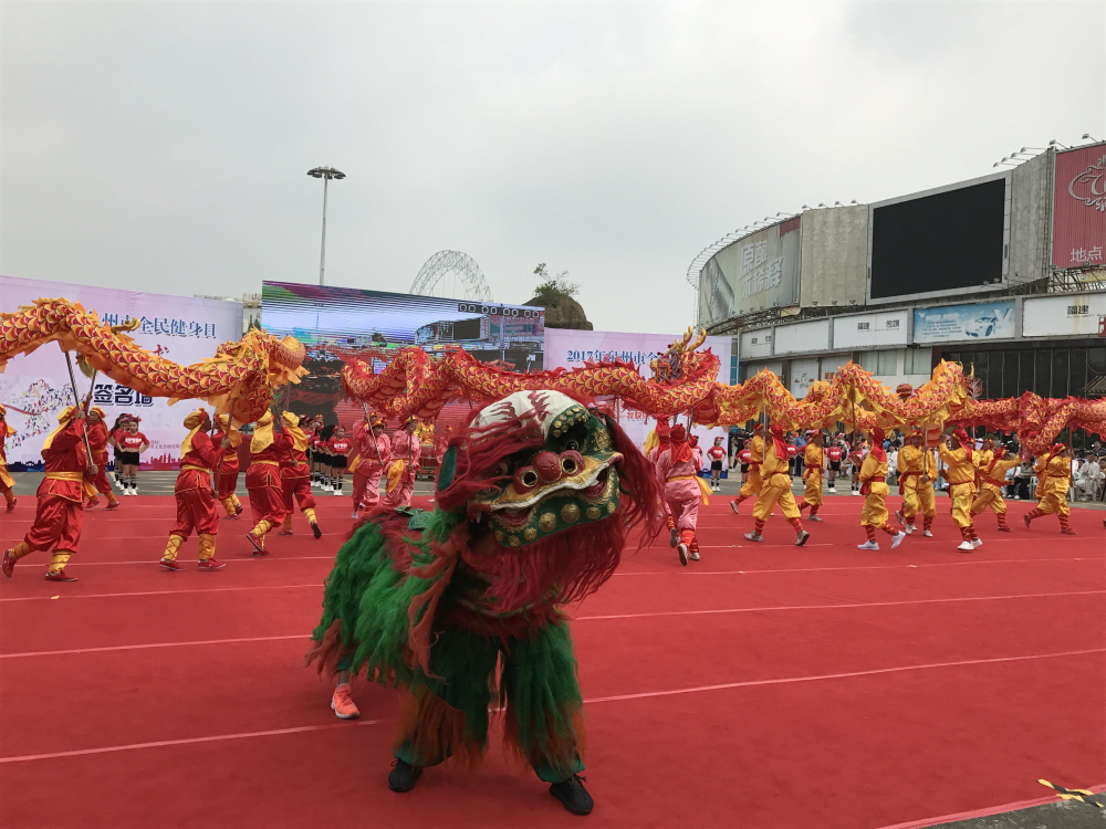 随后,精彩的文体表演开始了。五彩“巨龙”在空中翻腾,朝气蓬勃的孩子们带来激情洋溢的啦啦操,点燃现场激情,赢得阵阵掌声。此外,丰泽区全民健身爱好者带来了体能健身操、太极拳、武术、花式足球等精彩节目,吸引了现场观众的眼球,许多观众纷纷举起手机,拍下精彩画面。
