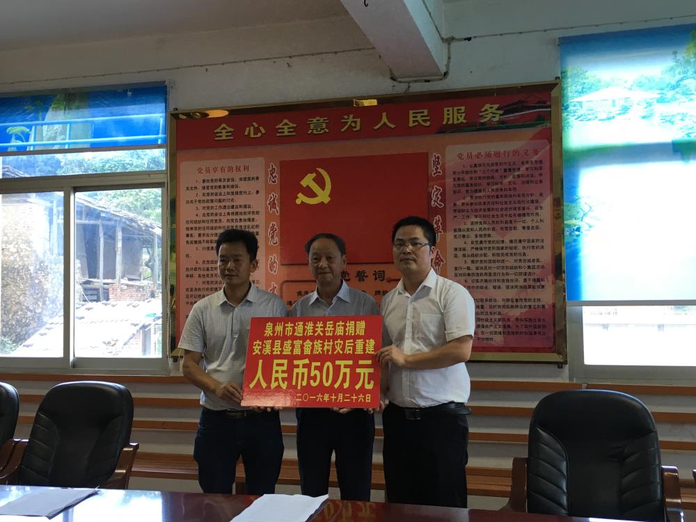 (泉州市通淮关岳庙捐赠安溪县盛富、善坛畲族村灾后重建)