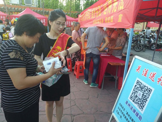 通过开展纪念《法律援助条例》颁布实施15周年宣传活动,进一步提高了法律援助公众知晓率,扩大了法律援助社会影响力,展示了法律援助工作保障服务民生的良好形象。(泉州市法律援助中心)