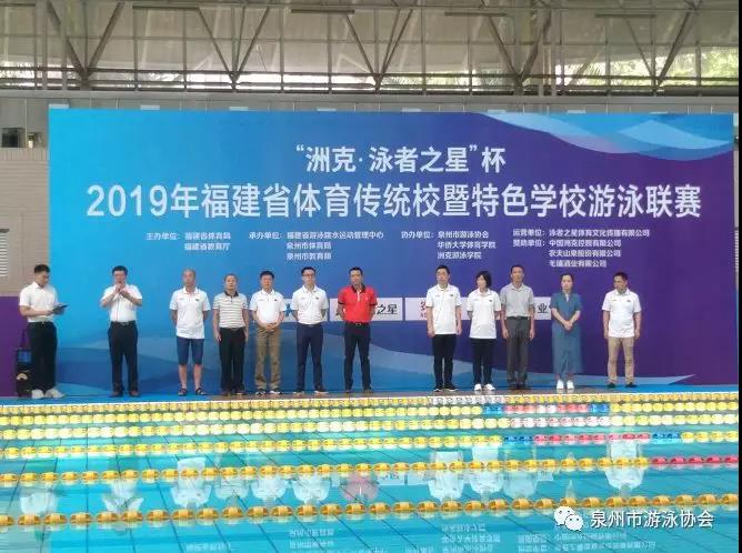 “洲克·泳者之星”杯2019福建省体育传统校暨特色学校游泳联赛于7月24-25日在泉州华侨大学陈影鹤游泳馆隆重举行。本次赛事由福建省体育局、福建省教育厅主办,福建省游泳跳水运动管理中心、泉州市体育局、泉州市教育局承办,并由泉州市游泳协会、华侨大学体育学院、洲克游泳学院协办,泳者之星体育文化传播有限公司运营,中国洲克控股有限公司冠名赞助,农夫山泉股份有限公司、毛铺酒业有限公司提供赞助。