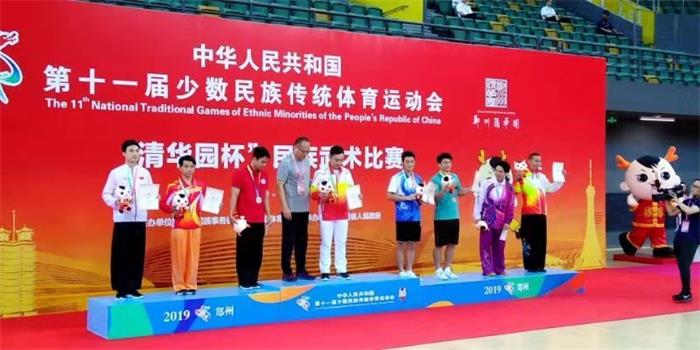 杜家宝获得武术套路男子传统其他类拳二等奖和男子传统双器械三等奖。