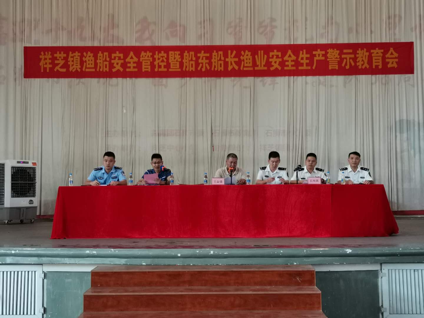 为进一步加强伏季休渔开渔前后我市渔业安全生产工作,有效防范安全事故发生,切实保障渔民群众的生命和财产安全,8月6日下午,泉州市海洋与渔业执法支队联合石狮市农业综合执法大队、祥芝镇政府、祥芝边防派出所,在祥芝中心小学召开渔船安全管控暨船东船长渔业安全生产警示教育会。参加会议的有泉州市海洋与渔业局党组成员、执法支队长王金健,石狮市农业综合执法大队、祥芝镇政府、祥芝边防派出所相关领导,以及祥芝镇480名船东船长。会议现场分发了1800多份《渔船“七严”宣传材料》《福建省海洋与渔业局致渔民朋友的一封信》《祥芝镇渔船安全生产“七防”宣传警示内容》《渔业船舶安全生产主体责任告知书》等宣传材料,参会船东船长签订了安全生产承诺书。