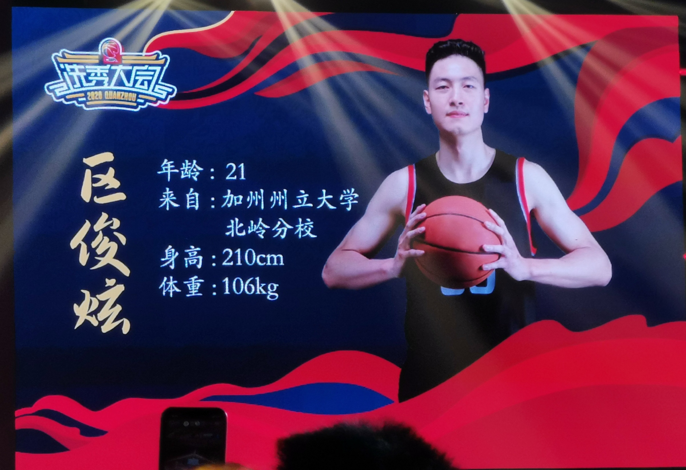 来自加州大学北岭分校的区俊炫当选为本届状元,被上海队选中。