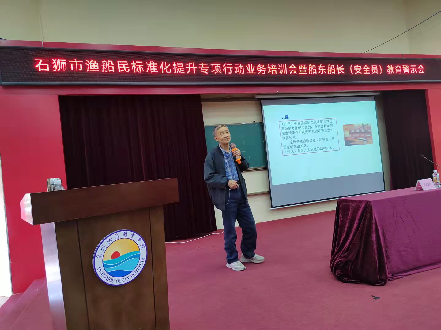 10月20日,石狮市举办全市渔船民标准化提升专项行动业务培训会暨船东船长(安全员)教育警示会。市农业农村局、沿海各镇分管领导、农业服务中心、渔业安全检查站、渔业信息台、渔业协会等单位负责人和全市重点船东船长参加会议。