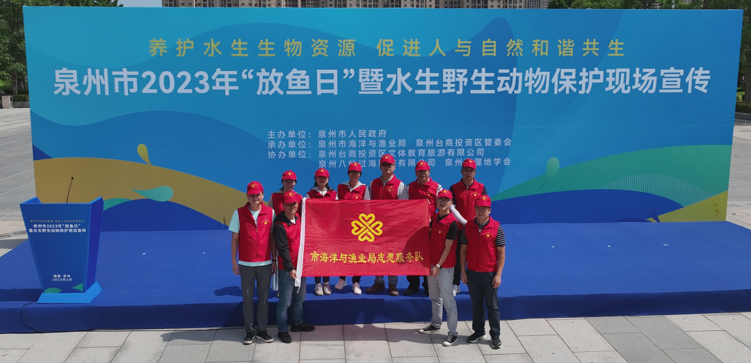 岁逢夏至,潮生万物。为全面贯彻落实党的二十大精神,深入学习贯彻习近平生态文明思想,进一步提升全民海洋生态文明意识,动员社会各界投身美丽泉州建设,6月21日下午,市海洋与渔业局、执法支队组织60余名志愿者在泉州台商投资区海丝艺术公园百崎湖畔参加2023年“放鱼日”暨水生野生动物保护宣传活动。