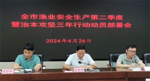4月26日下午,我局组织召开全市渔业安全生产第二季度暨治本攻坚三年行动动员部署会,分析研判一季度渔业安全生产形势,部署下阶段渔业安全及伏季休渔执法重点工作。市局安全生产领导小组成员单位负责人,沿海县(市、区)渔业行政主管部门分管领导、执法大队负责人参会。