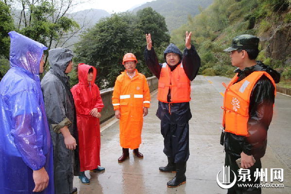 “鲇鱼”给安溪、永春、德化等山区县带来了严峻的雨情。在瓢泼大雨中驱车两个半小时后,郑新聪来到水口镇,详细了解灾情,部署安排抢险工作。随即,他又赶往塌方路段——水口镇区通往梨坑村的交通要道。昨晚到早上八点内300多毫米的降水导致山洪爆发,前往梨坑村道路被冲毁,大面积路面被掏空,车辆无法通行。郑书记涉水步行出入现场,对救灾工作提出具体要求。