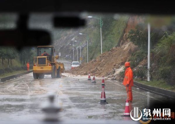 德化省委旧址路段塌方,交通公路部门全力抢修。(廖培煌 陈淑华 张伟民)